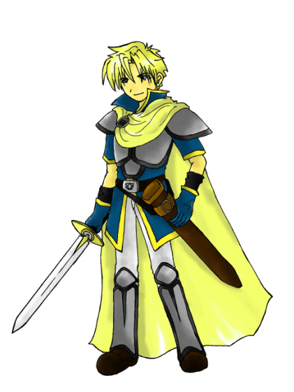 テンクウ王家に仕える兵士団のトップに立つ人物。その誠実さと忠誠心で王家の者のみならず、国民からも信頼されている。12歳で兵士団に入った時からめきめきと剣の腕前を上げ、今ではテンクウ一の腕前と言われている。おまけに金髪で端正な顔立ちの持ち主なので、女の子からの人気は抜群である。ファンクラブまであるとかないとか。